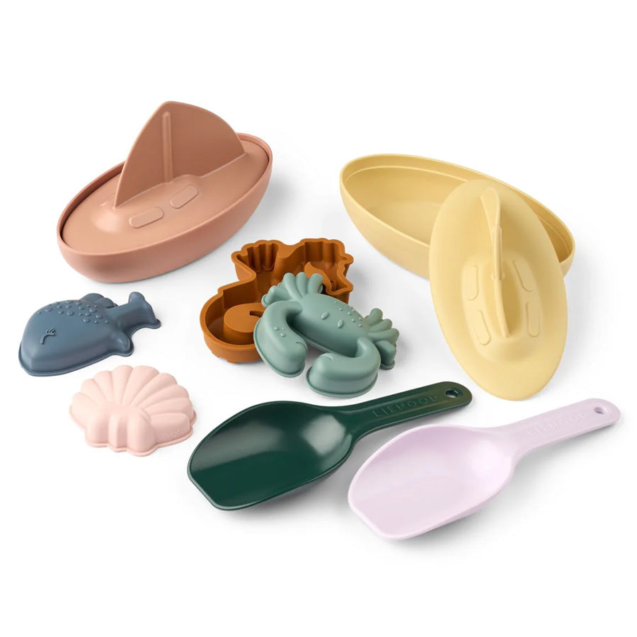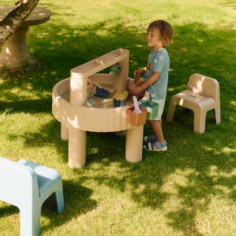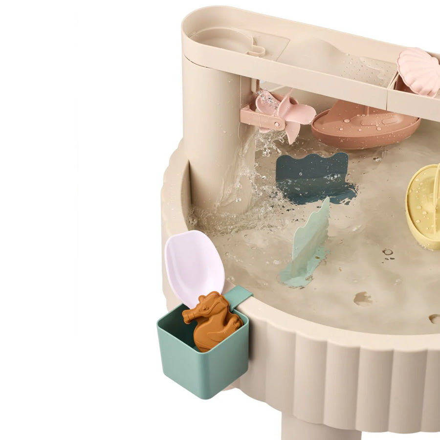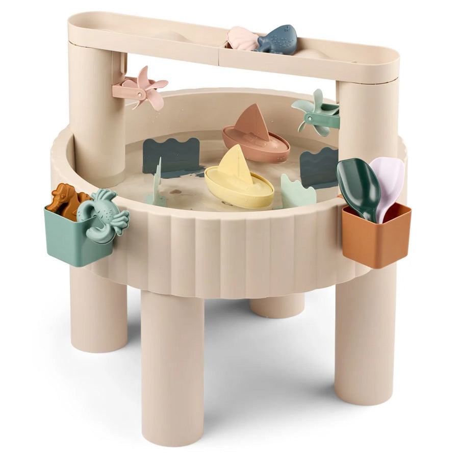 Vielseitiger Aktivitätstisch von Liewood für Wasser- und Sandspiele. Beinhaltet viel Zubehör wie Boote und Mühlen, die die Fantasie und Kreativität des Kindes anregen.