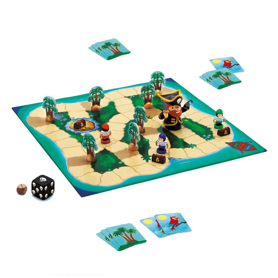 Ein aktives und strategisches Spiel von Djeco. Hilf den Matrosen, die Schatzkisten zu holen, ohne vom gefährlichen Piraten gefangen zu werden. Viel Spannung und taktische Entscheidungen.