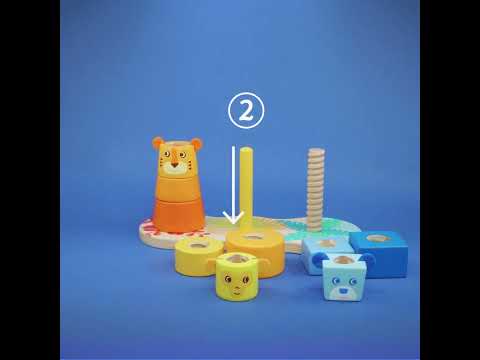 Djeco Multi Stack Stablelegetøj er et spændende stablelegetøj i træ, hvor barnet kan udforske tre forskellige måder at stable på. På basen sidder tre pinde med hver sin funktion, og barnet skal finde ud af, hvordan de farverige brikker passer på hver af dem. Undervejs møder barnet tre søde dyr – en abe, en løve og en bjørn – som gør legen både sjov og lærerig.