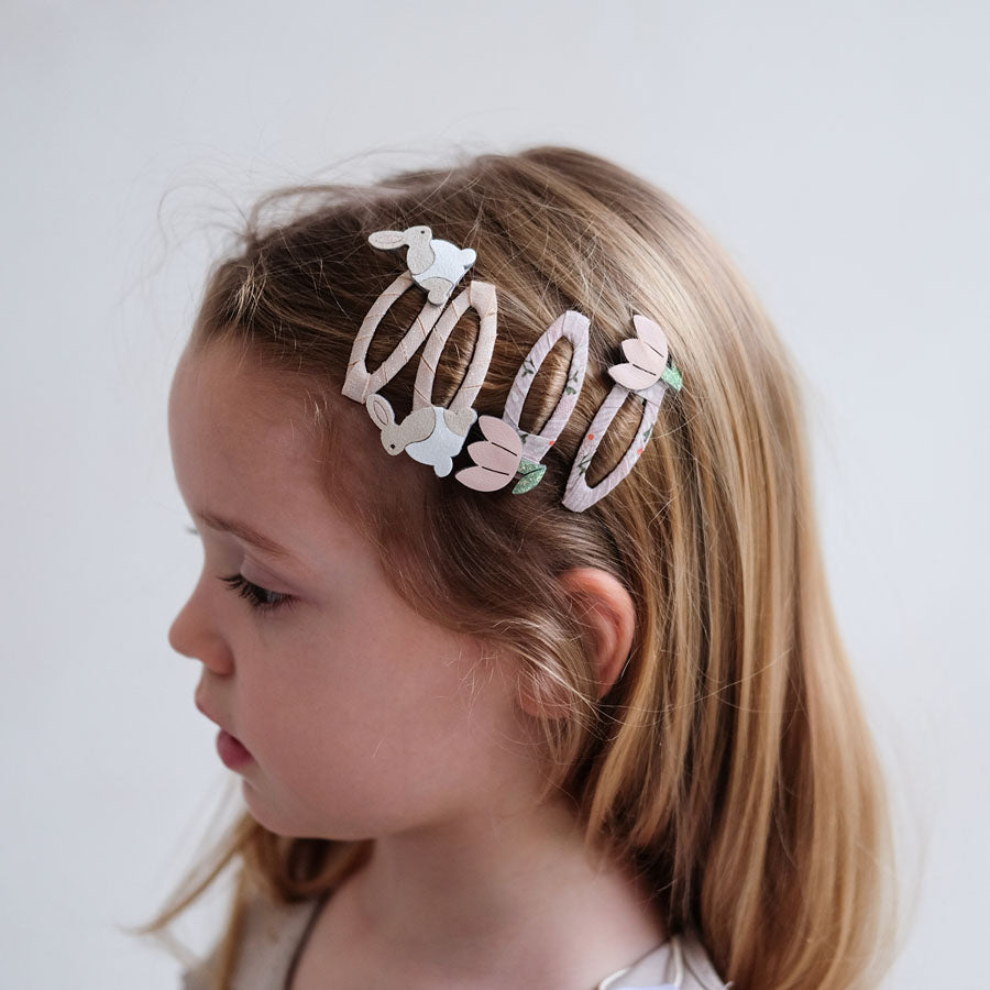 4 Mimi & Lula Haarklammern mit Bunny- und Blumen-Design