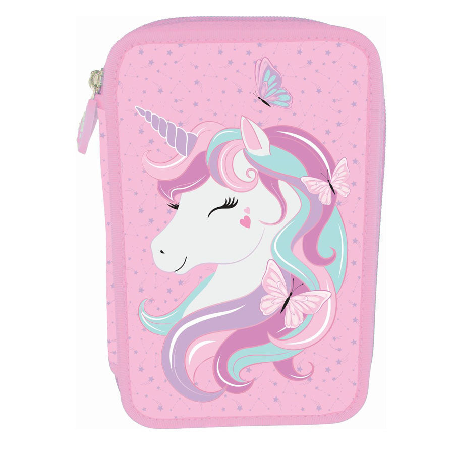 Det Dobbelt Penalhus med Unicorn i Rosa kombinerer praktisk opbevaring med et flot design, der passer godt til skoledagen.