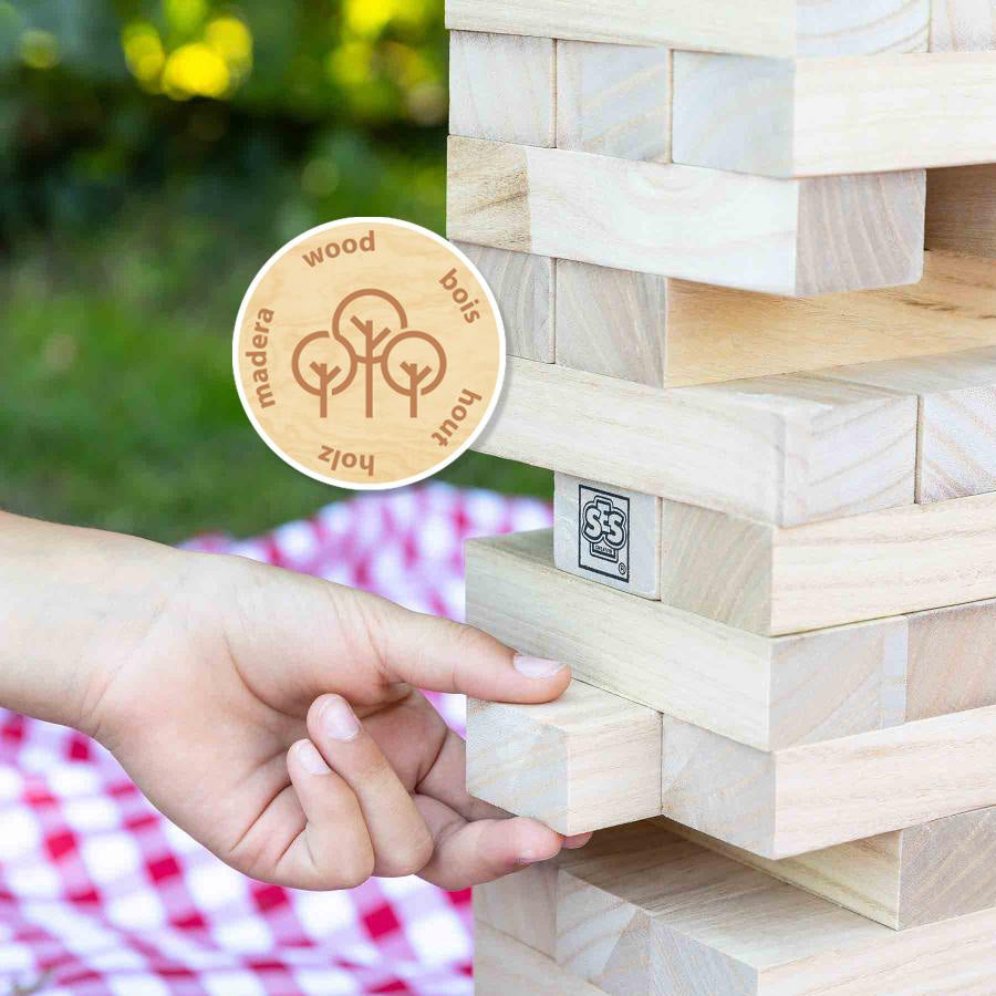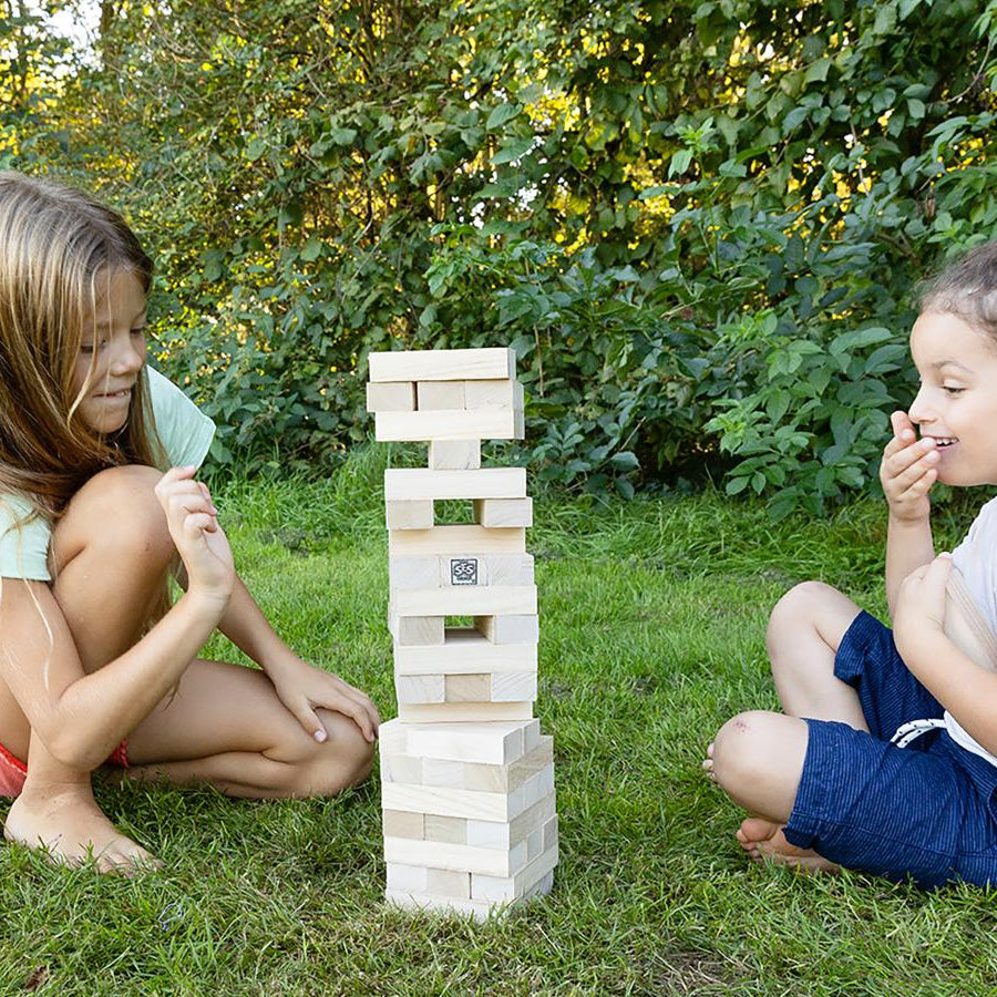 Klodsmajor XXL fra SES Creative er den klassiske balanceleg i en større og mere fysisk version, hvor både børn og voksne kan være med. De store træklodser gør spillet mere intenst – og langt sjovere, især når det spilles udendørs med familie og venner.