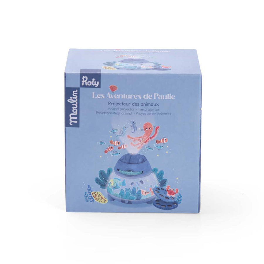 Der wiederaufladbare Projektor Die Abenteuer von Paulie bringt die gemütlichen Abenteuer aus Paulies Universum ins Kinderzimmer. Perfekt für ruhige Momente, in denen die Fantasie sich entfalten darf.